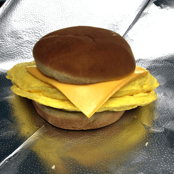 Our 2 Eggs and Cheese breakfast sandwiches come with 2 beaten eggs, and American cheese on a bun!